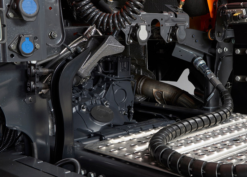 La toma de aire ubicada en un nivel alto está diseñada para suministrar el aire más limpio posible al motor, lo que resulta muy útil en los entornos llenos de polvo. La nueva toma de aire ubicada en un nivel alto está disponible para toda la gama de motores, incluido el de 16 litros, y viene en 2 versiones: estándar y de trabajo pesado.