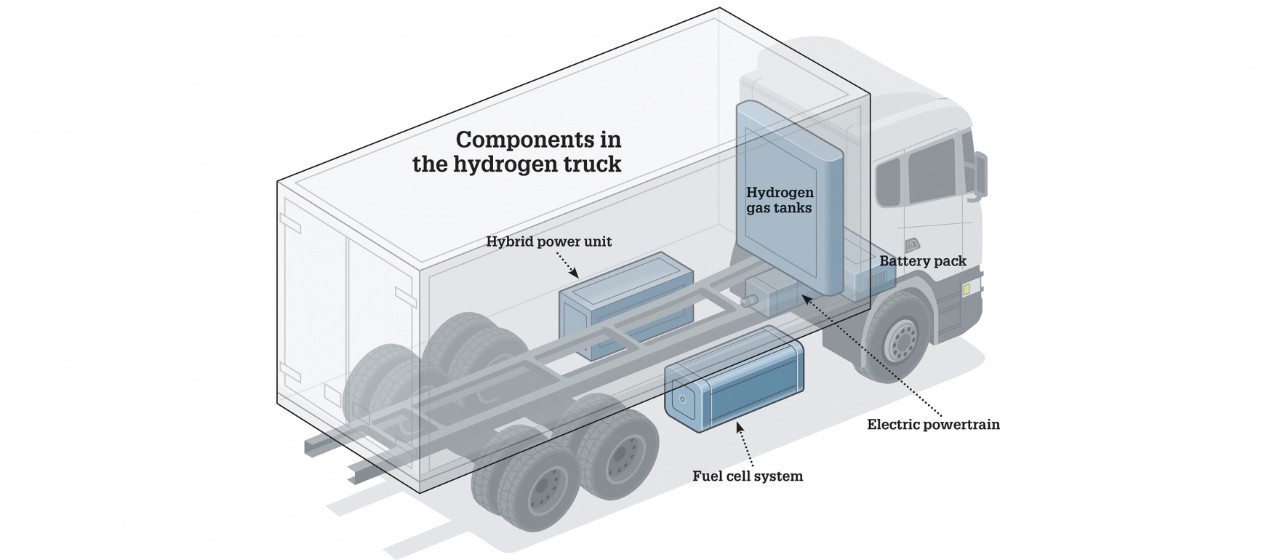 Como funciona um caminhão elétrico com célula de combustível de hidrogênio
