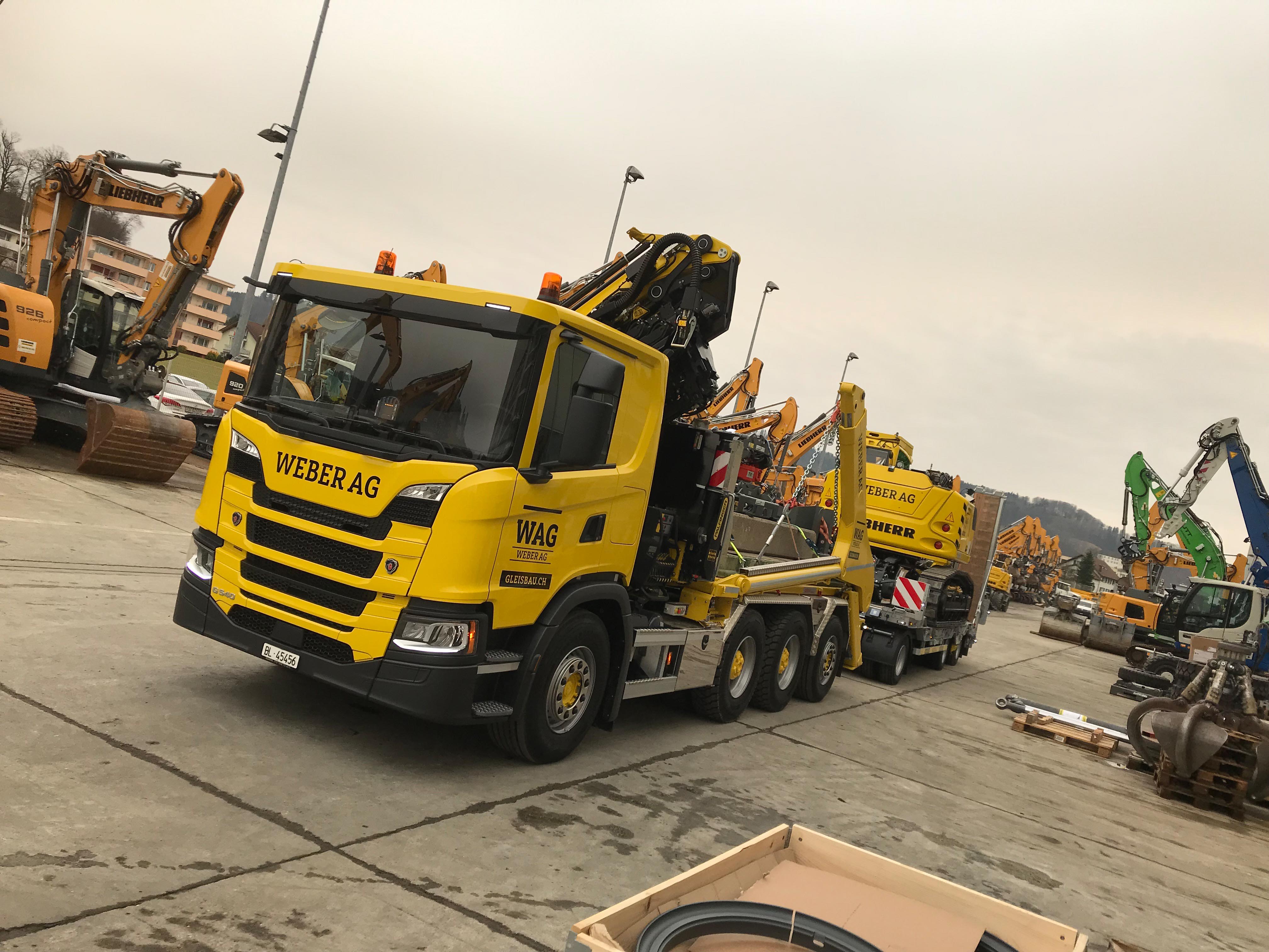Um den stetig wachsenden Bedürfnissen und Aufträgen gerecht zu werden, hatte sich die Unternehmung schon länger mit der Optimierung des eigenen Fuhrparkes auseinandergesetzt. Die beiden eigenen schweren Nutzfahrzeuge sind zum einen bereits etwas in die Jahre gekommen und entsprachen schon länger nicht mehr den heutigen Bedürfnissen der stetig weiterentwickelten Dienstleistungsangebote der WEBER AG. So wurde in enger Zusammenarbeit mit Bruno Christ, Scania Verkaufsberater bei der Scania Schweiz AG in Pratteln, ein Fahrzeugkonzept entwickelt und über die letzten zwölf Monate nun umgesetzt.