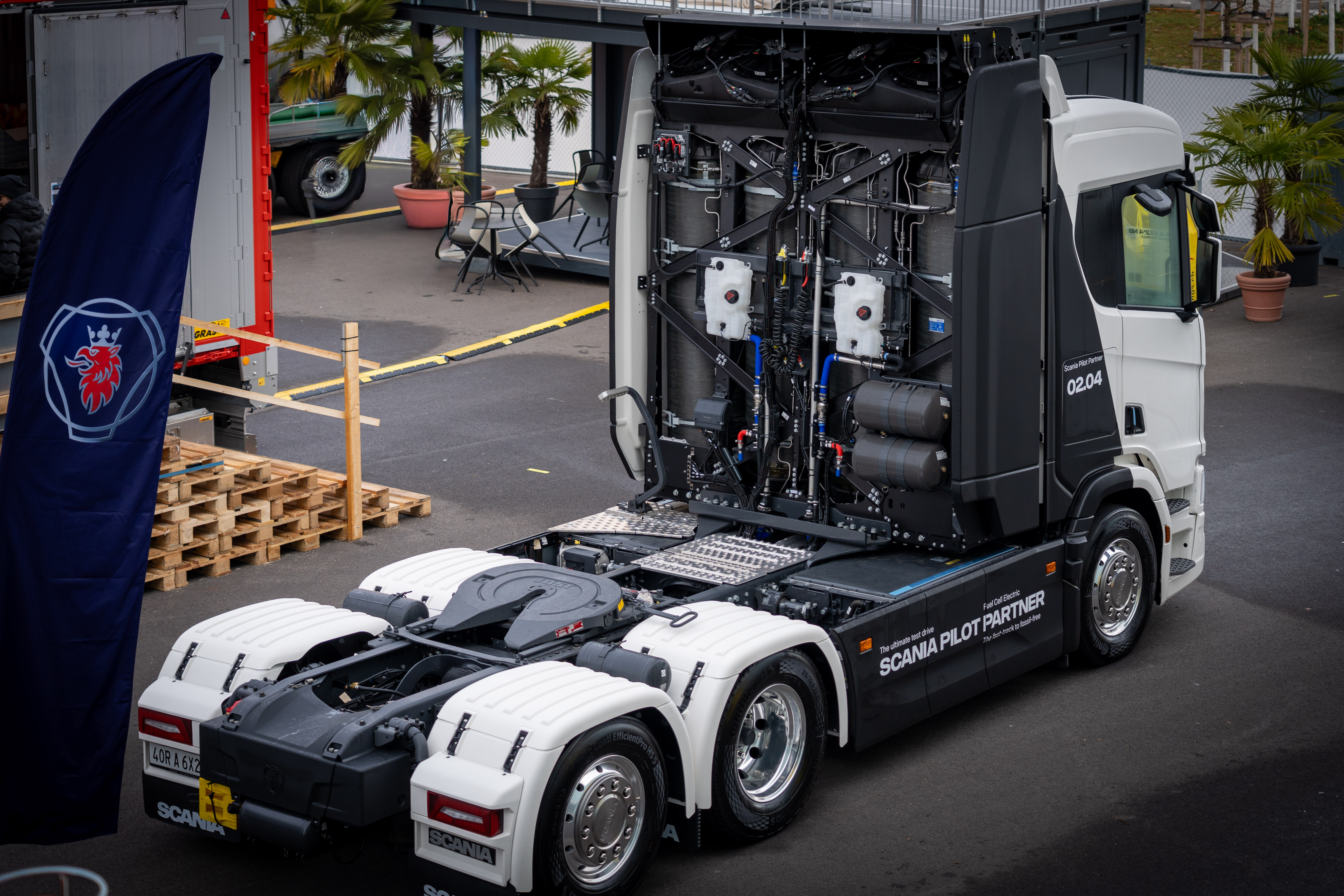 Der vorgestellte Lkw basiert auf dem elektrischen Antriebsstrang von Scania, kombiniert mit einem Brennstoffzellensystem. Dieses wandelt Wasserstoff in elektrische Energie um, die den Elektromotor antreibt. Als einzige Emission entsteht Wasserdampf. Das Fahrzeug erreicht eine Reichweite von bis zu 1’000 Kilometern und wird im realen Transportbetrieb getestet. Die Kombination aus hoher Reichweite, kurzen Betankungszeiten und elektrischer Effizienz macht Brennstoffzellen besonders interessant für den Fernverkehr. Mit dieser Technologie erweitert Scania seine Multi-Energy-Strategie – von batterieelektrischen Fahrzeugen über Bio-Treibstoffen bis hin zu Wasserstoff – um je nach Einsatzbereich den Übergang zu fossilfreien Transportlösungen zu ermöglichen.