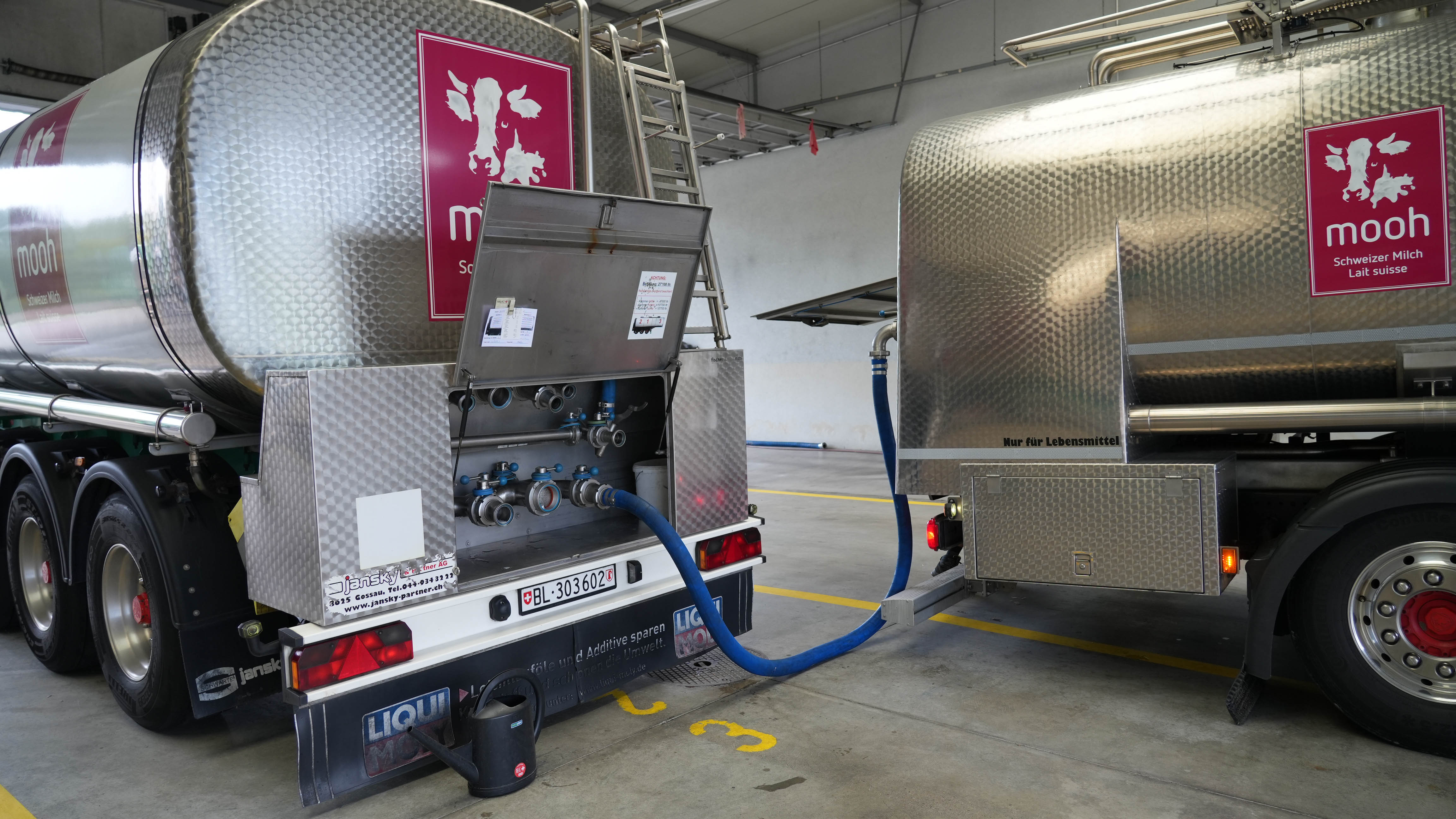 Die neue Scania 40R A 4x2 Sattelzugmaschine steht nun während sieben Tagen in der Woche im Einsatz, um Milch ab Firmensitz in Sissach zu grossen Milchverarbeitungs-Betrieben zu transportieren. Dafür wird die auf den Bauernhöfen abgeholte Milch in bereitstehende, rund 28'000 Liter fassenden Tankauflieger umgeladen, welche dann durch die neue BEV-Sattelzugmaschine mit täglich zwei Shuttle-Fahrten zur Weiterverarbeitung transportiert wird. Dabei werden pro Tag rund 500 Kilometer umweltfreundliche und CO2-freie Fahrten zurückgelegt. Und dies erst noch lärmarm.