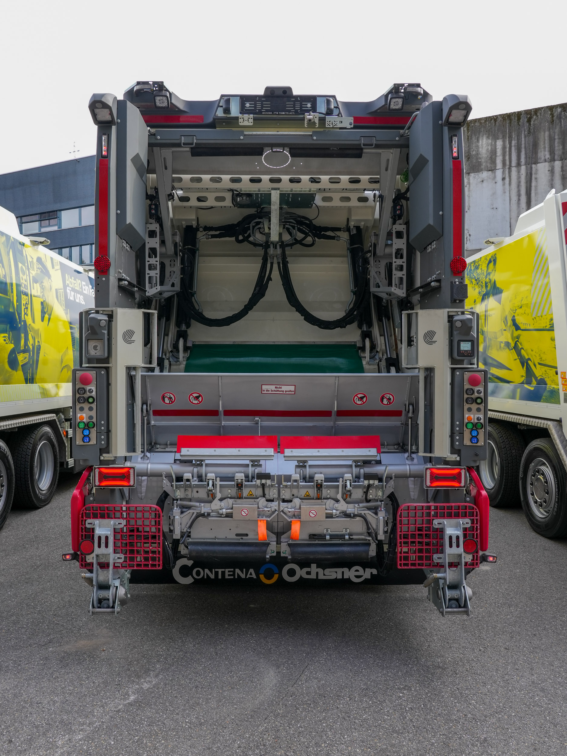 Die Fahrzeuge sind mit Pressmüllaufbauten von Contena Ochsner (Stummer Medium X4) ausgestattet. Die kompakte Bauweise sowie die moderne Schüttungstechnologie mit Twin-Lifter ermöglichen eine effiziente Beladung bei gleichzeitig reduziertem Platzbedarf im Heckbereich – ein klarer Vorteil im dichten Stadtverkehr und bei beengten Platzverhältnissen.