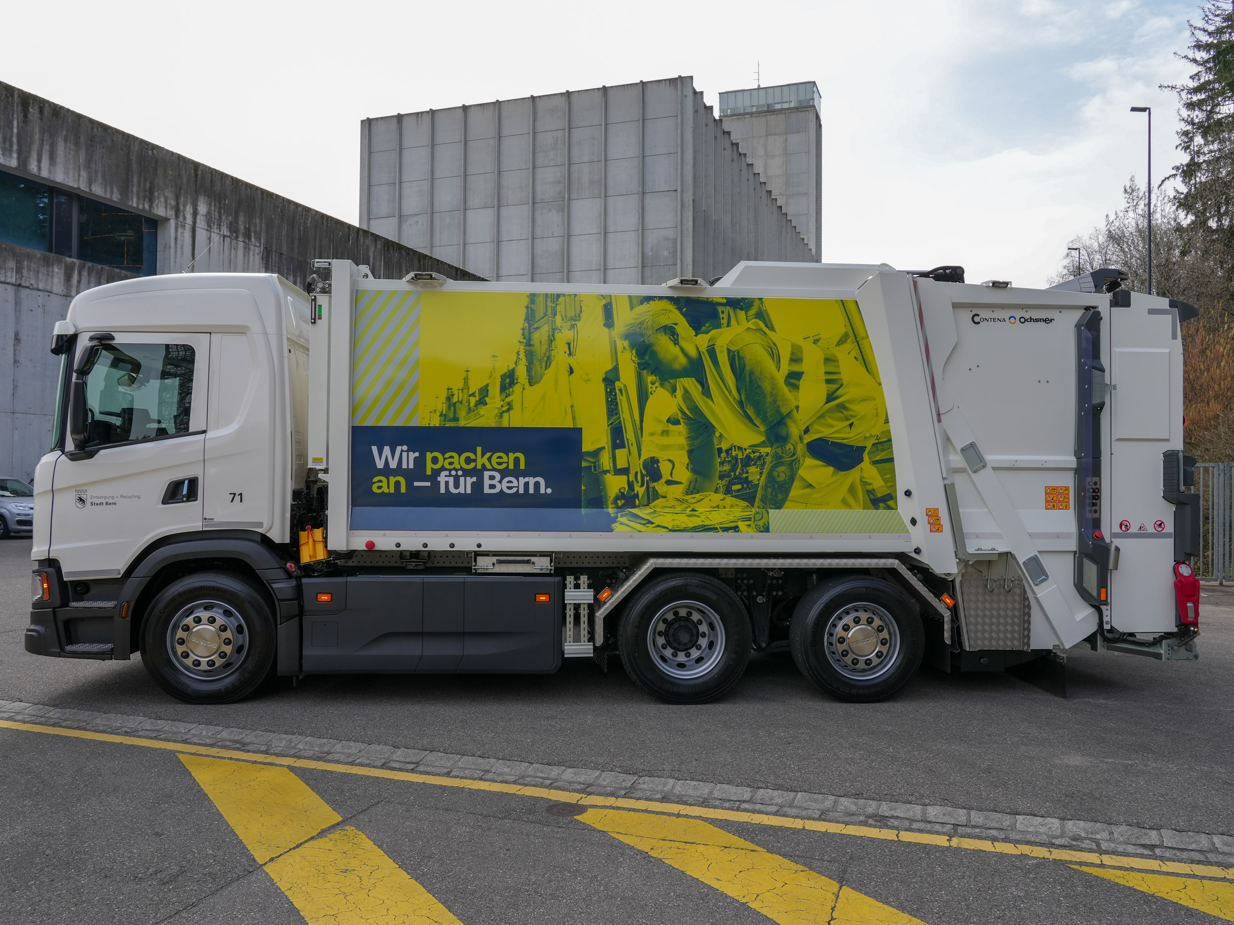 Ausschlaggebend für den Entscheid zugunsten von Scania waren insbesondere fahrzeugspezifische Vorteile, die exakt auf die Anforderungen im urbanen Einsatz abgestimmt sind. Der kurze Radstand von 3’550 mm ermöglicht eine hohe Wendigkeit – ein entscheidender Faktor in engen Stadtgebieten. Gleichzeitig bietet die Batteriekapazität von 416 kWh die notwendige Reichweite für den täglichen Einsatz im Sammeldienst und stellt derzeit eine einzigartige Kombination im Markt dar.