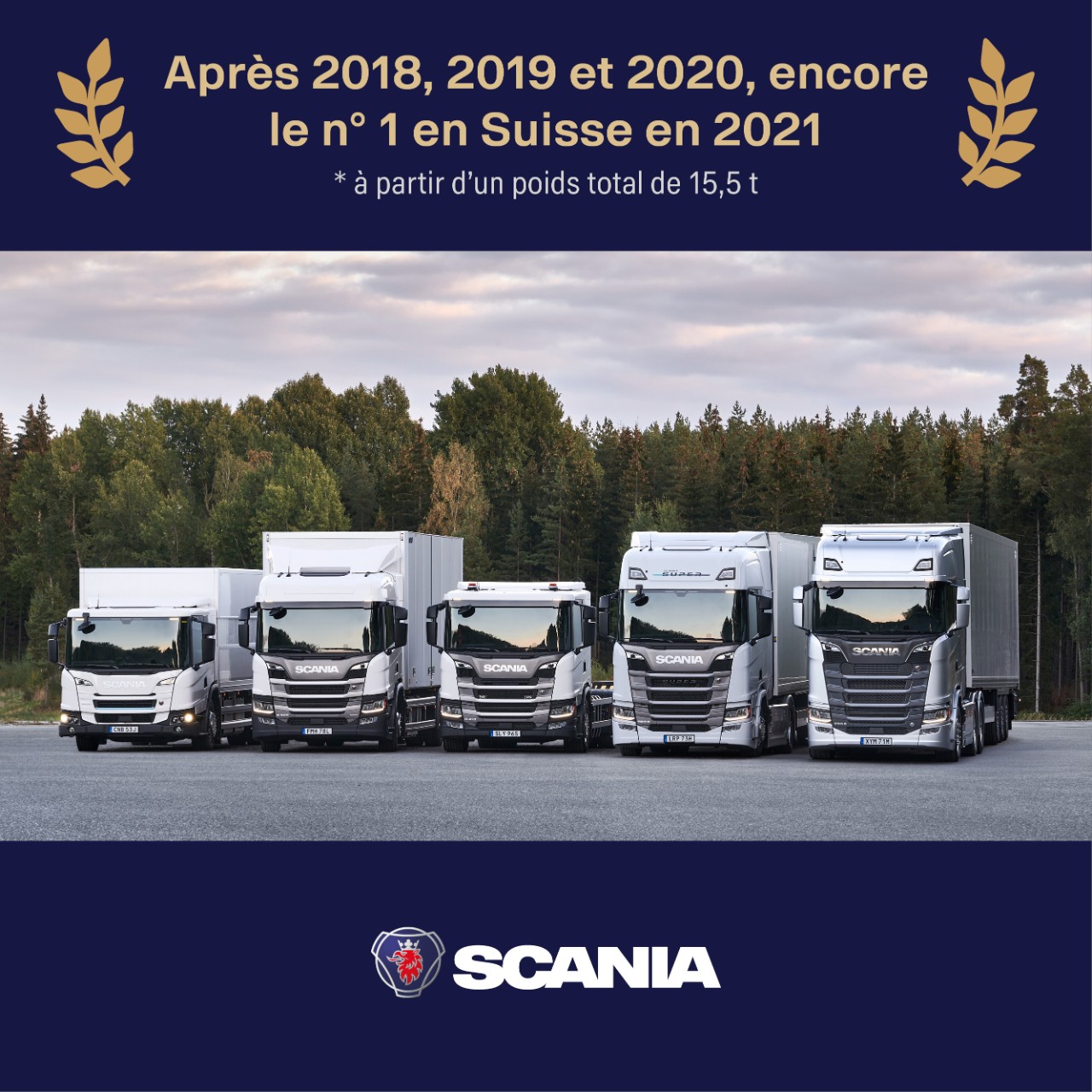 Après 2018, 2019, 2020, les véhicules utilitaires Scania ont à nouveau réussi à se hisser au premier rang des immatriculations de véhicules de 15,5 tonnes et plus l'année dernière.