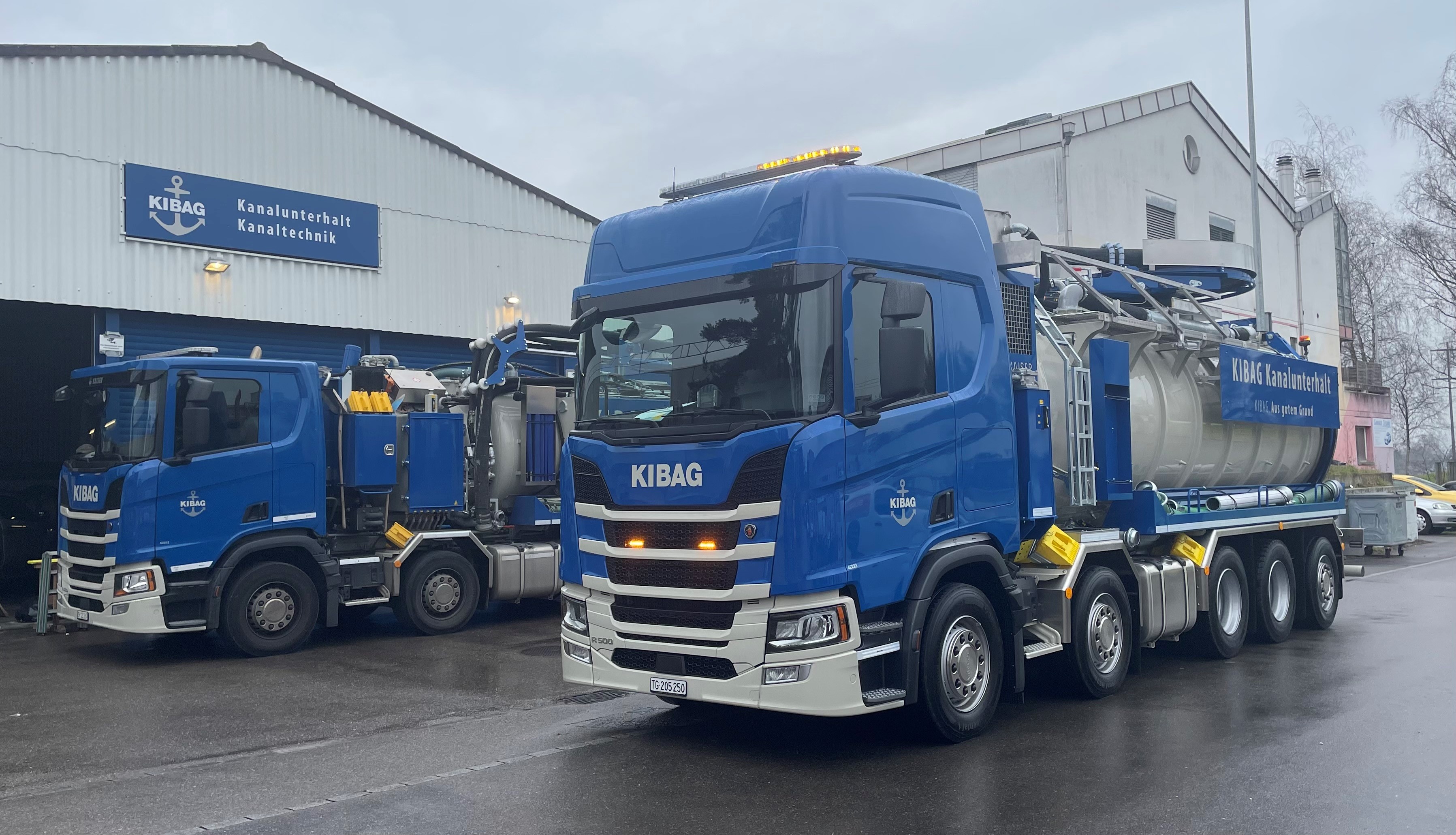 Depuis 2020, KIBAG Entwässerungstechnologie a mis en service cinq nouveaux camions Scania, le cinquième étant encore en phase finale de construction et fêtant sa première «entrée en scène» lors de la Suisse Public à Berne. Même si le véhicule de base ne joue «que le second rôle» lors de l'acquisition, les véhicules Scania utilisés jusqu'à présent ont pu satisfaire pleinement aux exigences et aux attentes élevées, et pas seulement à celles du conducteur, comme le raconte en souriant Daniel Nater, directeur. Après tout, une carrosserie très compliquée avec ses nombreuses fonctions différentes ne peut exploiter tout son potentiel que si le véhicule sur lequel elle est montée peut satisfaire aux exigences de performance extrêmement élevées.