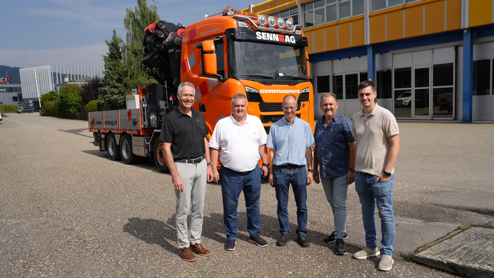 Le nouveau Scania est utilisé dans toute la Suisse et est conduit par Bruno Rickenbach, chauffeur depuis près de 40 ans. Bien qu'il se réjouisse beaucoup de «son» nouveau véhicule, il doit également dire adieu à son véhicule de 19 ans, qui ne l'a jamais laissé tomber. Interrogé sur le nouveau Scania et ses attentes, Jörg Senn, président du conseil d'administration de Senn AG, n'a pas hésité longtemps. «Nous suivrons de près le nouveau véhicule pour voir s'il tient toutes les promesses. La première impression a été très positive.» C'est pourquoi il n'a pas eu trop de mal à l'approuver. Il attend également avec impatience le prochain camion-grue, presque identique, dont la seule différence résidera dans une grue légèrement plus petite, a déclaré Jörg Senn.