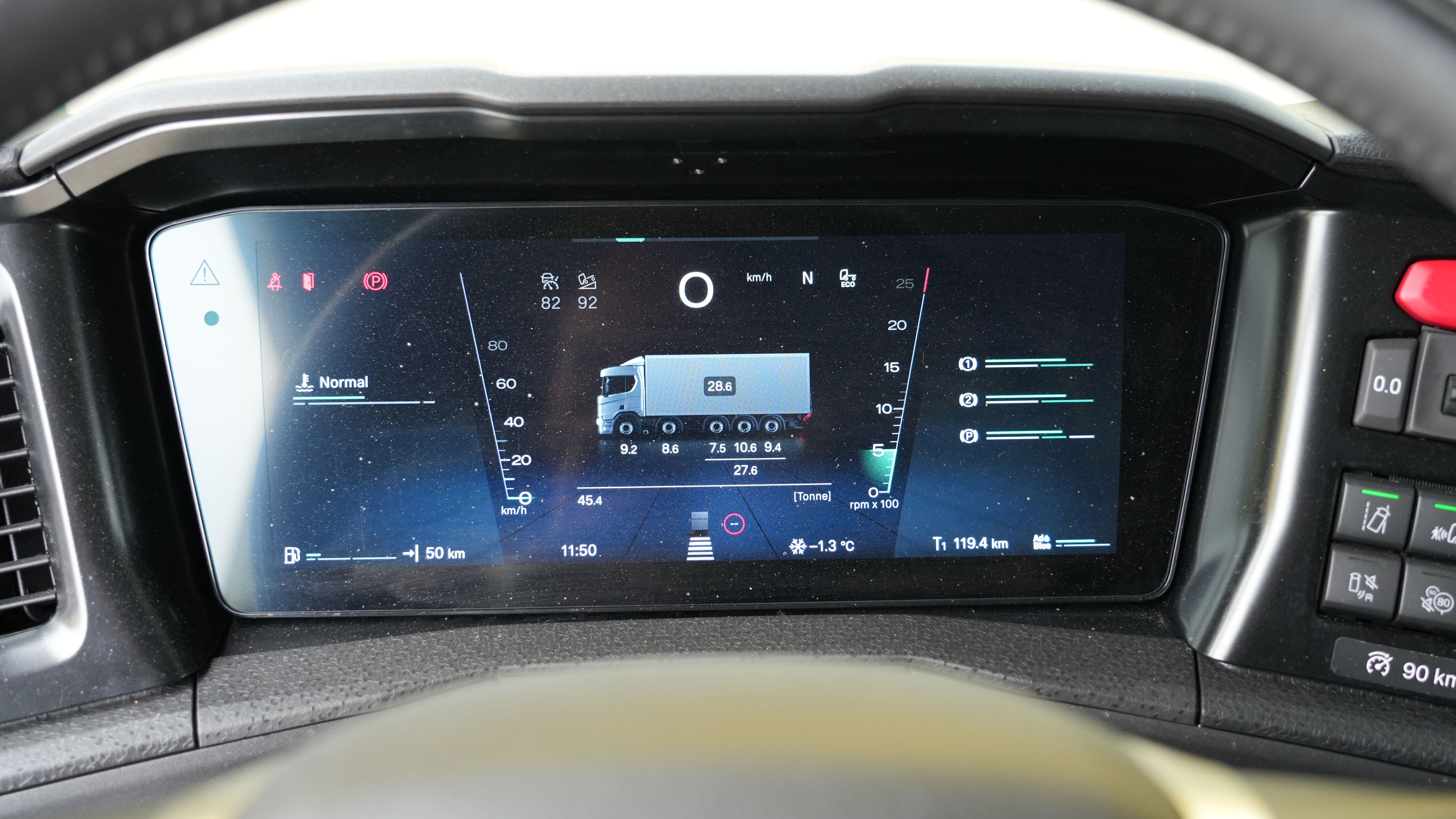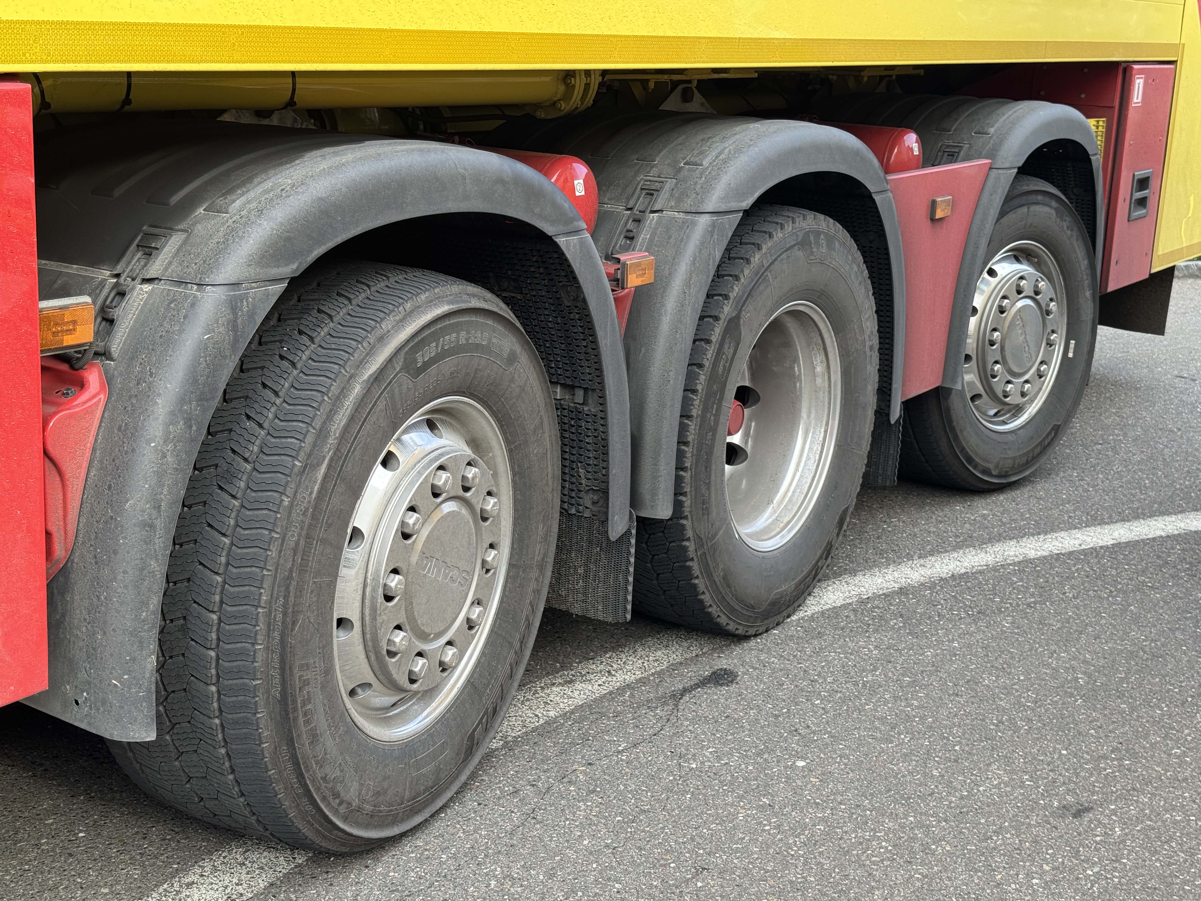 Grâce à un seul essieu arrière moteur, le nouveau cinq essieux est le premier à disposer de quatre essieux directeurs, ce qui rend le véhicule très maniable. Un avantage très apprécié dans un véhicule de 11,6 mètres de long, même si le conducteur Francesco Rubio a d'abord dû s'y habituer. Comme le véhicule a un rayon de braquage différent et un déport arrière plus important, il faut un peu plus d'espace libre à l'arrière. Avec la nouvelle configuration des roues, il est également important que les charges par essieu, avec deux fois 9 t, 10 t, 11 t et encore 10 t, disposent à tout moment de réserves suffisantes pour pouvoir répondre aux exigences légales.