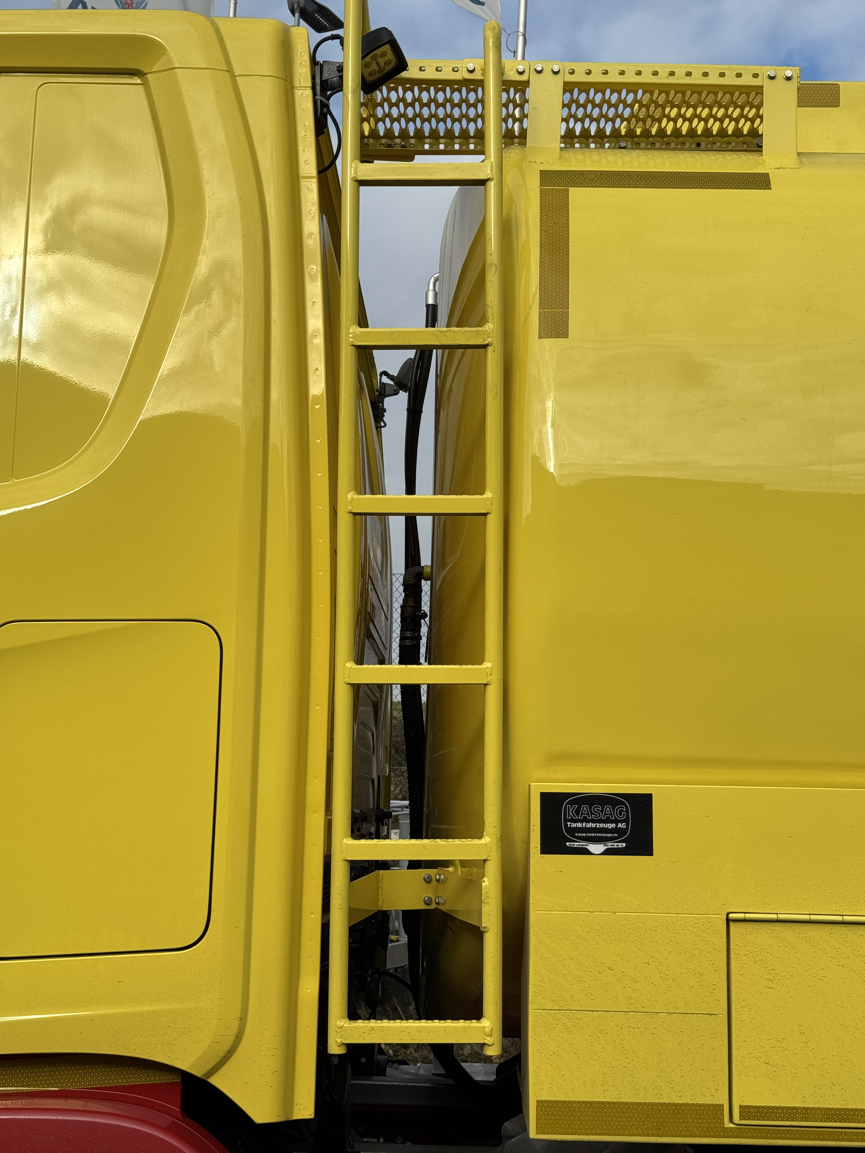 La citerne d'une capacité d'environ 33'500 litres, datant de 2014, a été démontée du véhicule précédent et entièrement révisée par la société KASAG Tankfahrzeuge AG à Langnau, puis repeinte et montée sur le nouveau châssis Scania. Elle a été placée plus à l'avant, ce qui a permis de raccourcir le nouveau véhicule d'environ 10 cm. Outre le remplacement de toutes les pièces d'usure, l'ensemble du système électronique a été adapté aux dernières réglementations et optimisé. Même après sa révision complète, la citerne dispose toujours de trois compartiments d'une capacité respective de 13'000, 5'500 et 15'000 litres et le déchargement peut se faire par pompage ou par gravité, deux compteurs différents étant installés à cet effet.