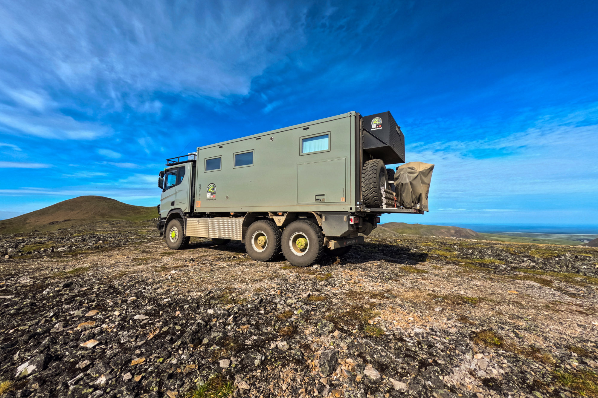 Pro dopravu původně uvažovali o něčem kompaktnějším – například obytné VW California, kterou mnozí používají na cestování. Postupem času se ale jejich vize rozrostla. Větší nezávislost, větší robustnost a větší svoboda na dlouhých cestách je nakonec dovedly ke Scanii. Rozhodujícím faktorem nebyla jen technologie, ale především lidské propojení. V Seuzachu našli tým, který neřešil jen standardní prodej vozidla, ale vášnivě podporoval neobvyklý projekt. Úzká spolupráce mezi Scanií a Bliss umožnila proměnit nápad v expediční speciál sestavený na míru.
