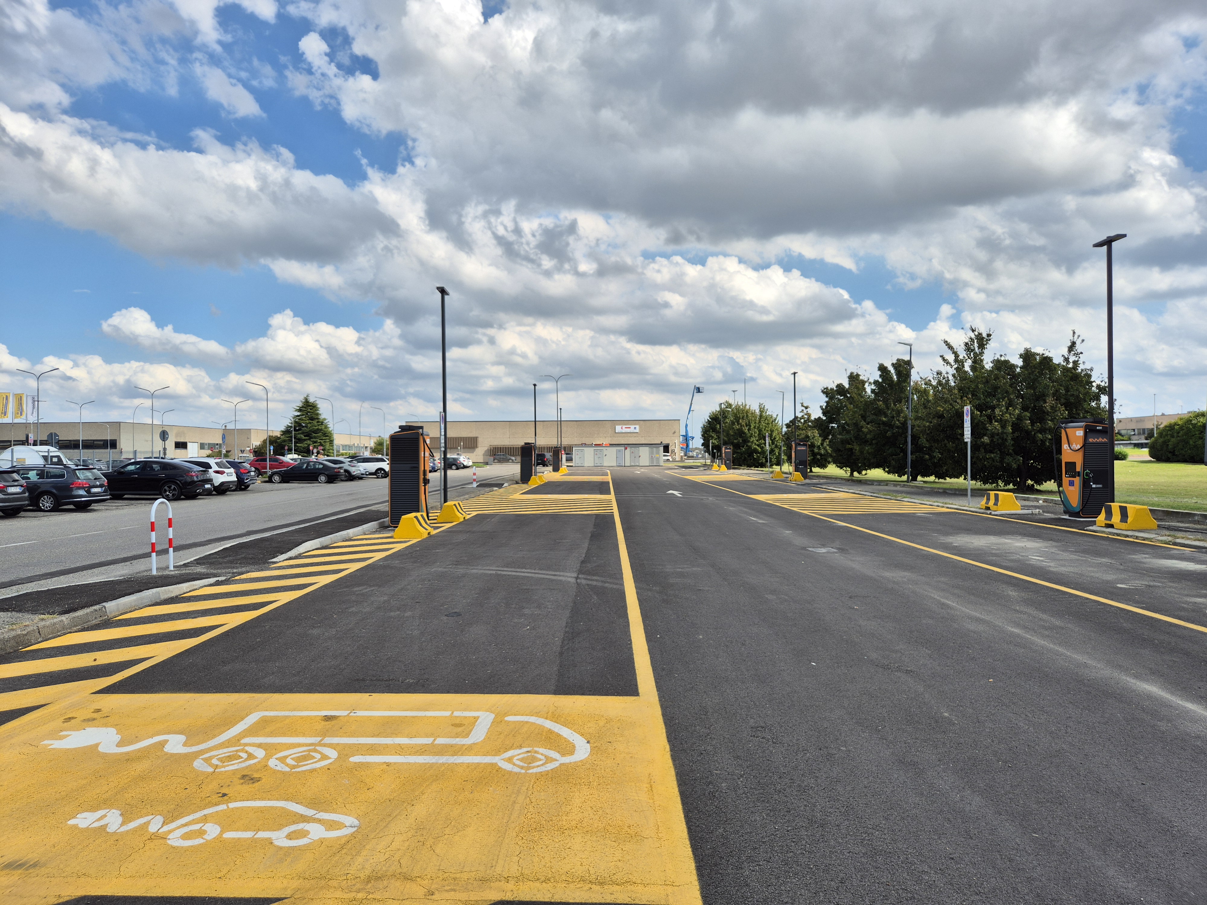 I sei camion in tour 100% elettrici (un compattatore, un ribaltabile, uno scarrabile, due trattori e un centinato) faranno tappa a Piacenza il 6 settembre presso la nuova officina Scania Euro S.A.M. Due. La flotta ricaricherà a 2 km da questa, nella stazione di ricarica di Ewiva, joint venture tra Enel X e il Gruppo Volkswagen, nata per accelerare la diffusione della mobilità elettrica in Italia. In questo nuovo sito di ricarica, costituito da sei colonnine da 400 kW di potenza ciascuna, gli Scania ricaricheranno con una potenza massima di 375 kW, ottenendo 340 km di autonomia in un’ora di ricarica (tempo calcolato con un consumo energetico medio di 1,1 kWh/km e una massa totale a terra di 35 ton). Ewiva, un CPO (Charging Point Operator) già compatibile con il servizio Scania Charging Access, ha recentemente attivato questo nuovo sito di ricarica, già operativo per accogliere anche mezzi pesanti grazie alla potenza disponibile e alla configurazione degli spazi.