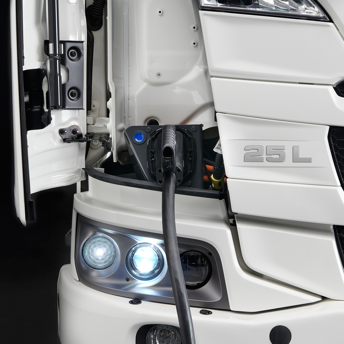 Электрический силовой агрегат обеспечивает значительную мощность и мгновенный крутящий момент. Полностью электрическая коробка отбора мощности обеспечивает непрерывную работу гидравлических и рефрижераторных установок полностью без токсичных выбросов. Запас хода 250 км от одной зарядки позволяет выполнять короткие и средние маршруты исключительно на электрической тяге.