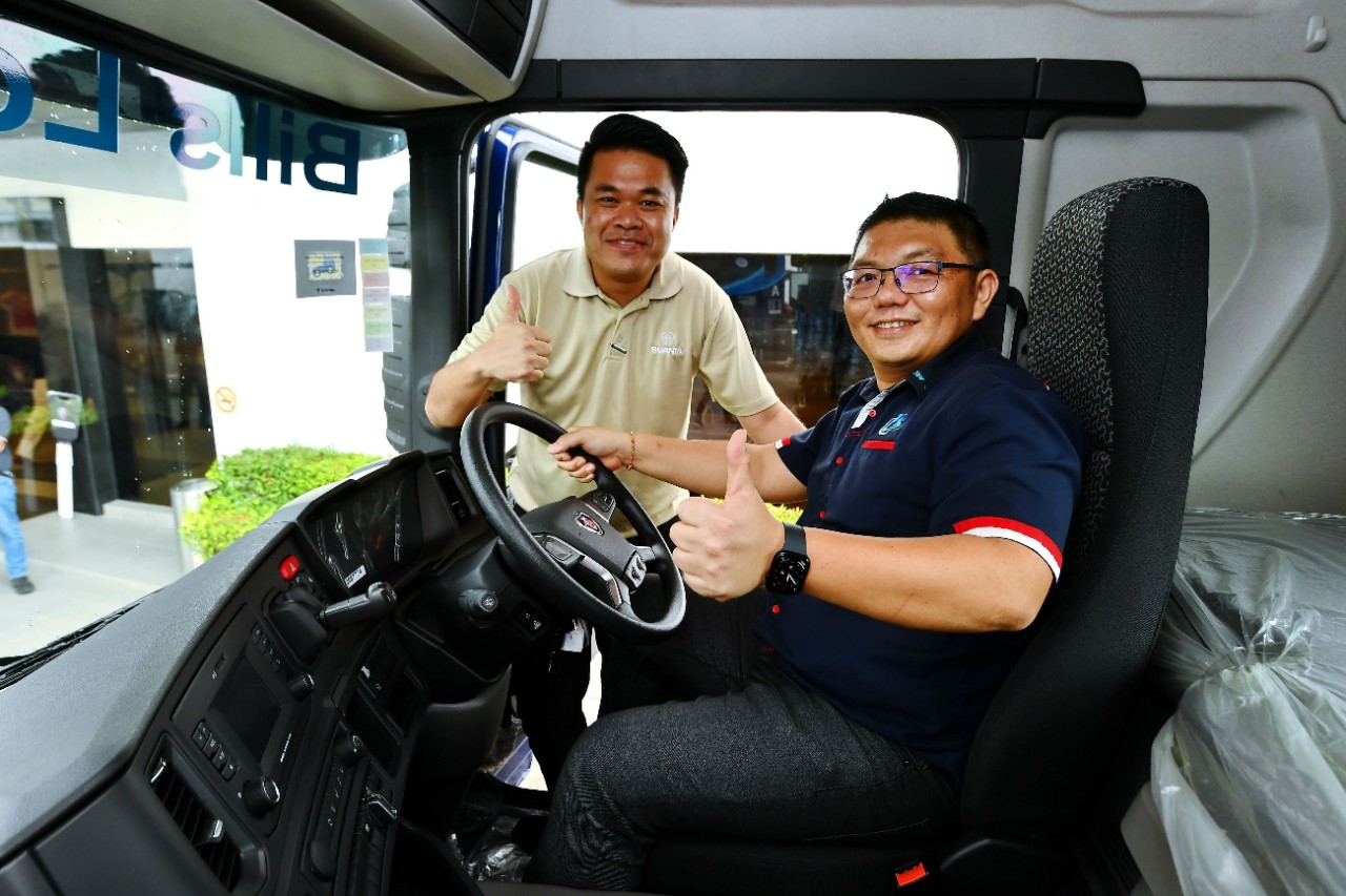 Gary Chin (pictured above), National Solutions Sales Manager, Scania Southeast Asia, describing the technology behind the control panel on the dashboard to Chiew Keng Kah, Managing Director, Bills Logistic Solution Sdn. Bhd.