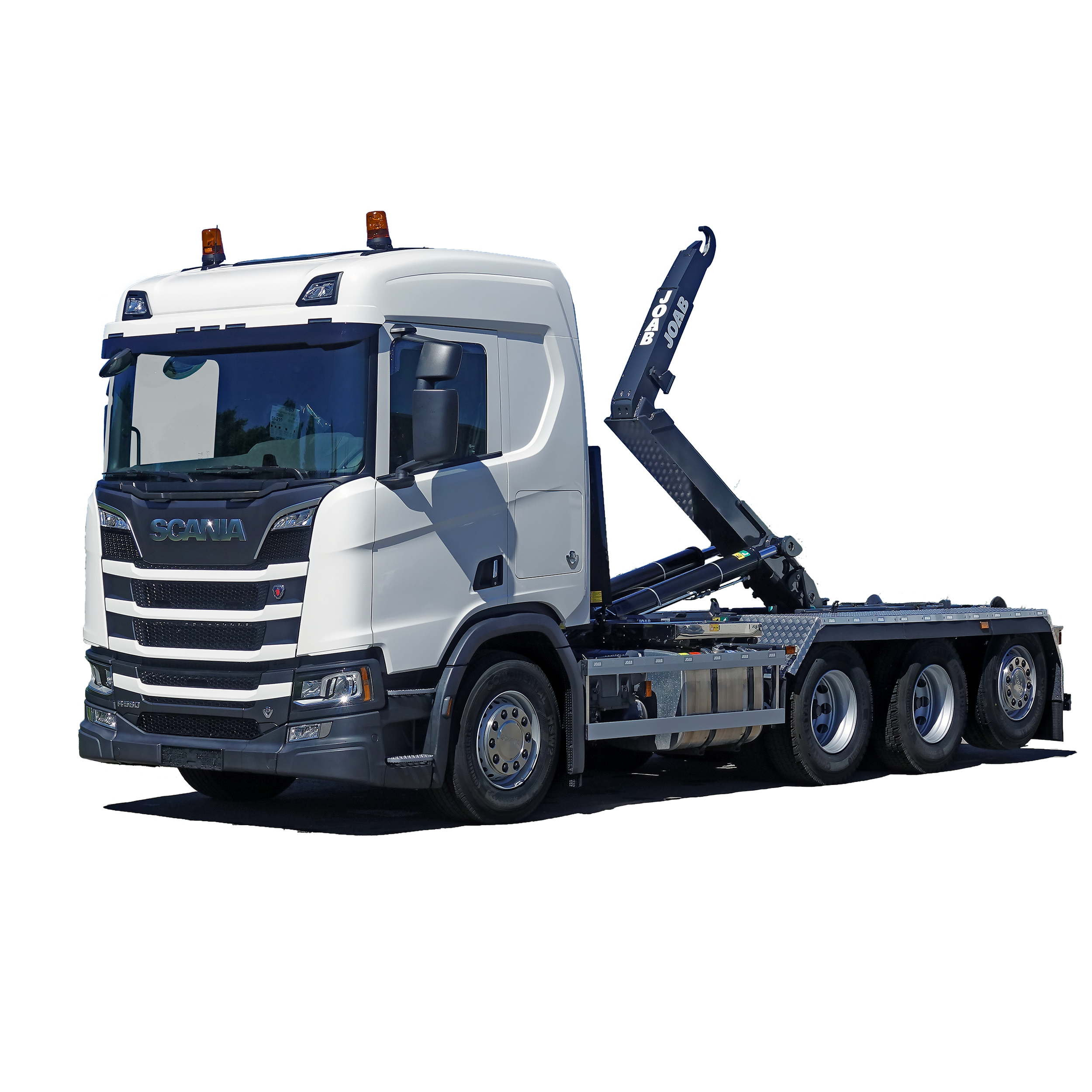 Krokløft og chassismontert utrustning er lakkert i Scania chassisgrå farge