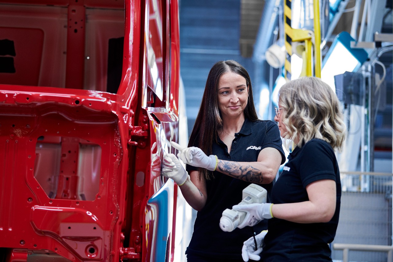 I Grundmåleriet genomgår hytterna först en rad förbehandlingar för att sedan grundmålas med pulverfärg. Detta appliceras med elektrostatisk laddning. Pulverfärgen härdas sedan i ugn, när hytten har svalnat tätas den från fukt, smuts och oljud. Hytternas kvalitet kontrolleras slutligen innan de skickas vidare till Täcklacksmåleriet.