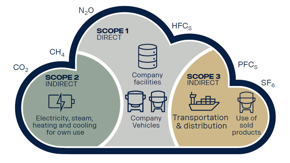 盤查議定書將公司的排放劃分為以下範圍:來自我們營運活動的直接碳排放屬於範圍 1,例如用於加熱、引擎測試和公司車輛等化石燃料的燃燒,而購入的電力、熱能和蒸汽產生的間接排放則屬於範圍 2。