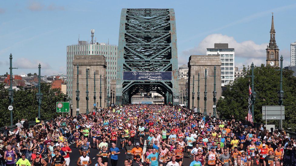 Taking place annually in North East England, the Great North Run is one of the largest half marathons in the world. Participants run between Newcastle upon Tyne and South Shields.