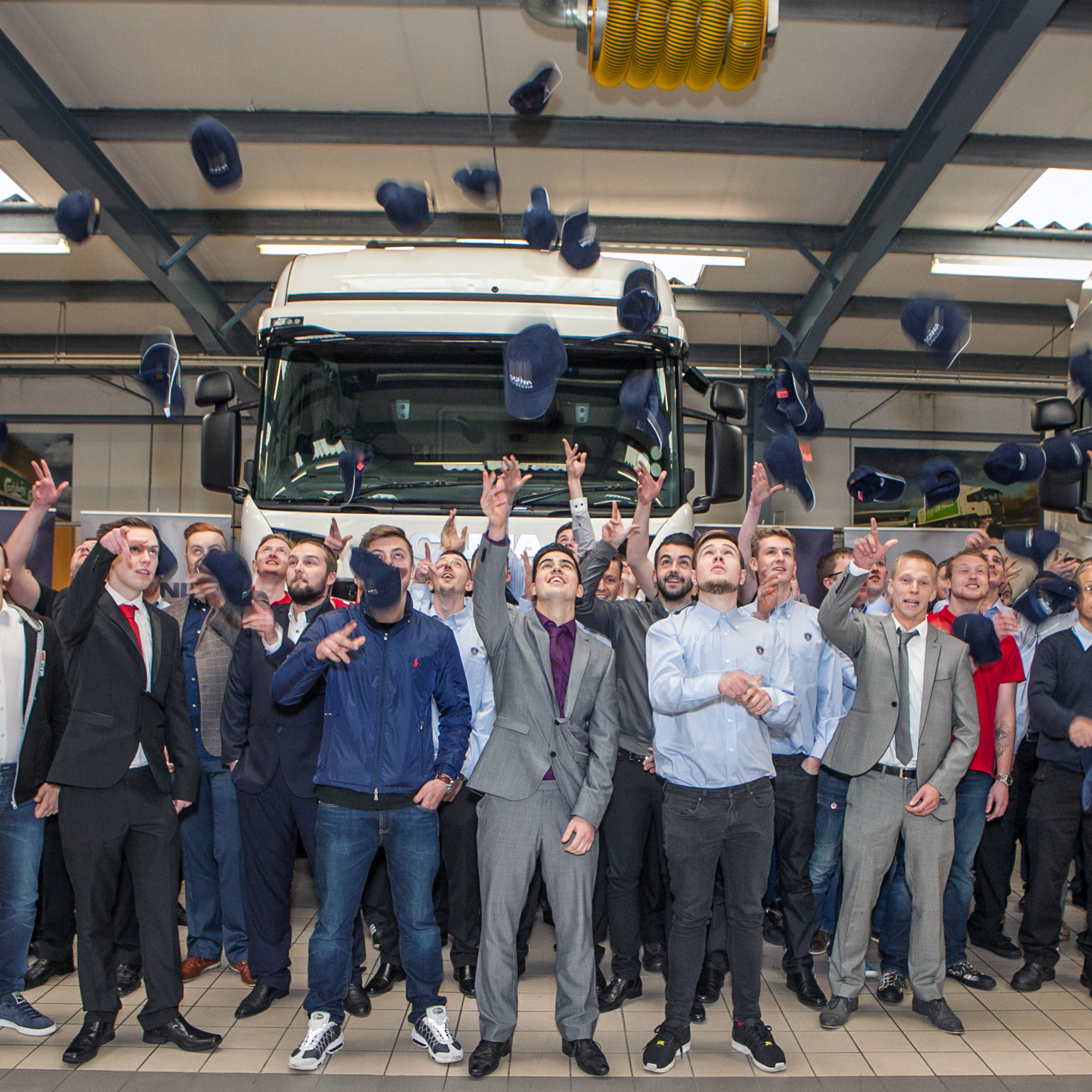 Historically, apprenticeships were a pass or fail, and that was it, move on to get on with your career. And there is still a perception that an apprentice doesn't graduate in the same way as a university student would. But at Scania, graduating is kind of a big deal, and something that we like to celebrate. After all, it isn't everyday that you pass two qualifications in one go and come out a fully experienced and training technician!