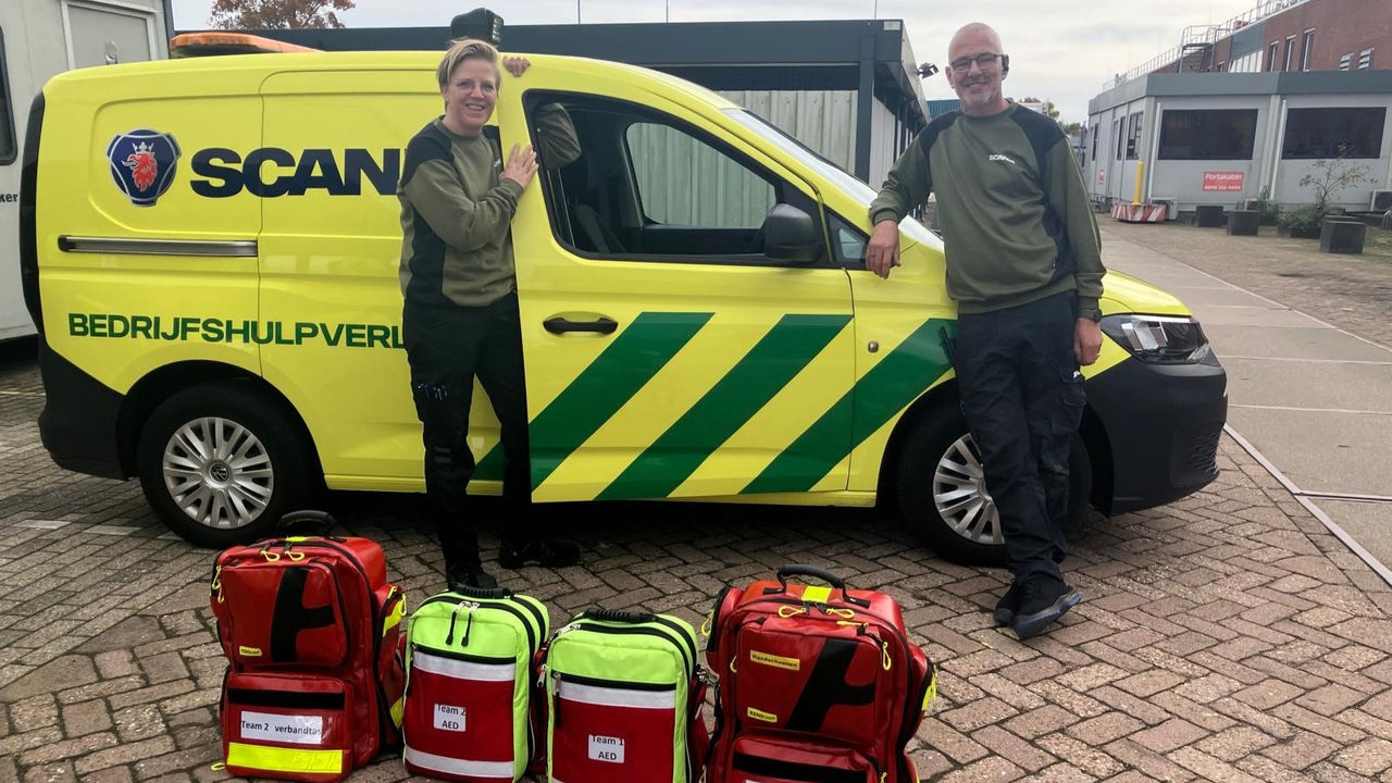 Op maandag 3 november is het de Dag van de BHV: hét moment om stil te staan bij de inzet van de bedrijfshulpverleners op onze vestigingen. Twee van hen zijn Gera van der Sluis en Bert van der Sloot, werkzaam bij Scania Production Zwolle. Hun motivatie? “Mensen helpen.”